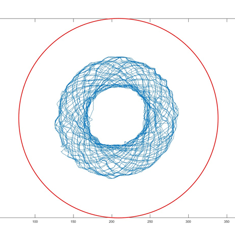 My work mostly involved running experiments with our vibrating baths and tracking the resulting droplet movement. We set-up experiments with drops free to move in circular baths and tracked their motion with a high-speed camera placed overhead. These droplets move around in occasionally interesting shapes from simple orbits to more complex patterns. We still don't fully understand the complex fluid mechanics at play in these systems, but it is speculated our little bouncing droplets may serve as quantum-mechanical analogues due to their pilot-wave properties.